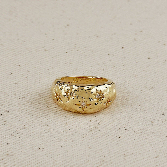 18k Gold Filled Hammered Moon Ring With CZ Stones