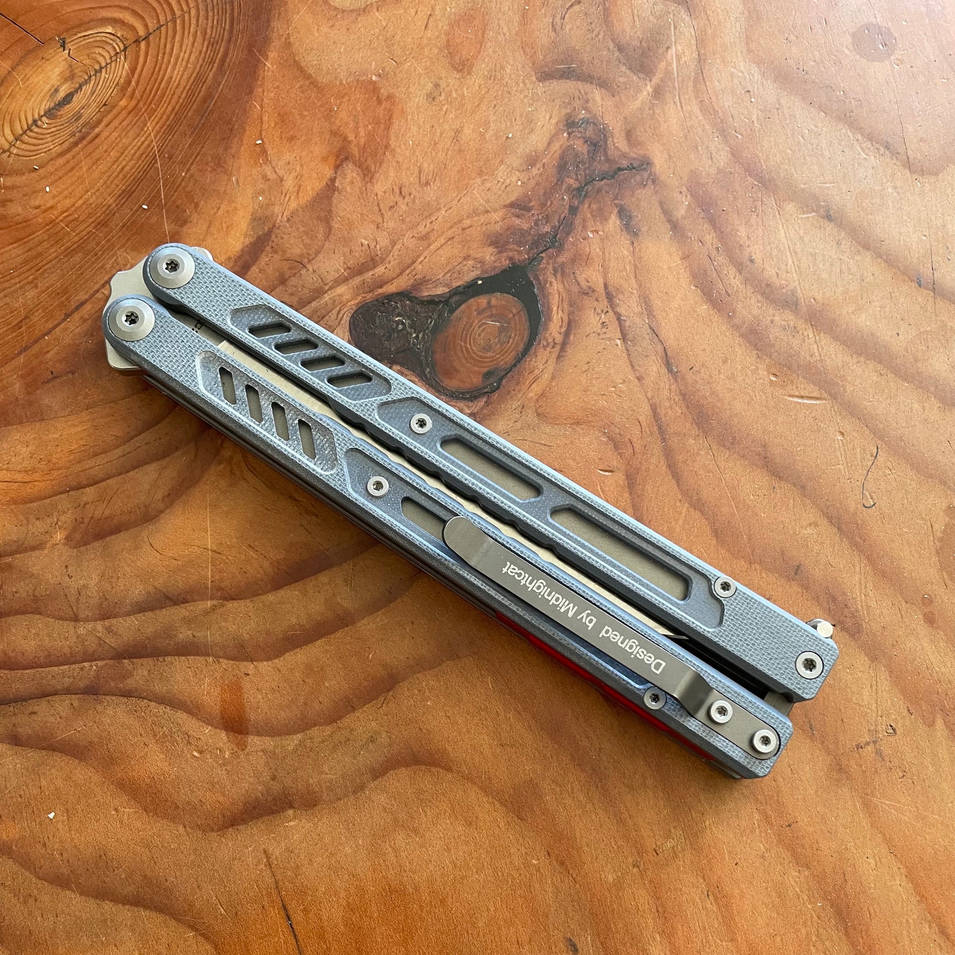Maxace Banshee V2 Balisong Butterfly Knife (MBIV01) - 4.7" 14C28N Satin Blade, Grey G-10 Handle with Red Spacers
