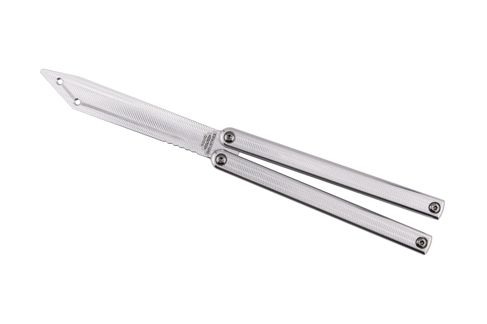 The optimal butterfly knife trainer for any competitive flipper on a tight budget. The Squiddy-AL is the only metal trainer without a blade shape. Now, introducing the Squiddy-ALT—the Squiddy-AL designed for blade enthusiasts. With weight rebalanced for improved distribution, it offers the best flipping experience yet.